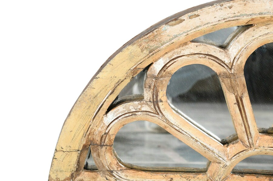 Vintage Antique Indian Teak Wood Reclaimed Ventilation Mirror Rustic Wall Decor Handcrafted Frame Vinterior