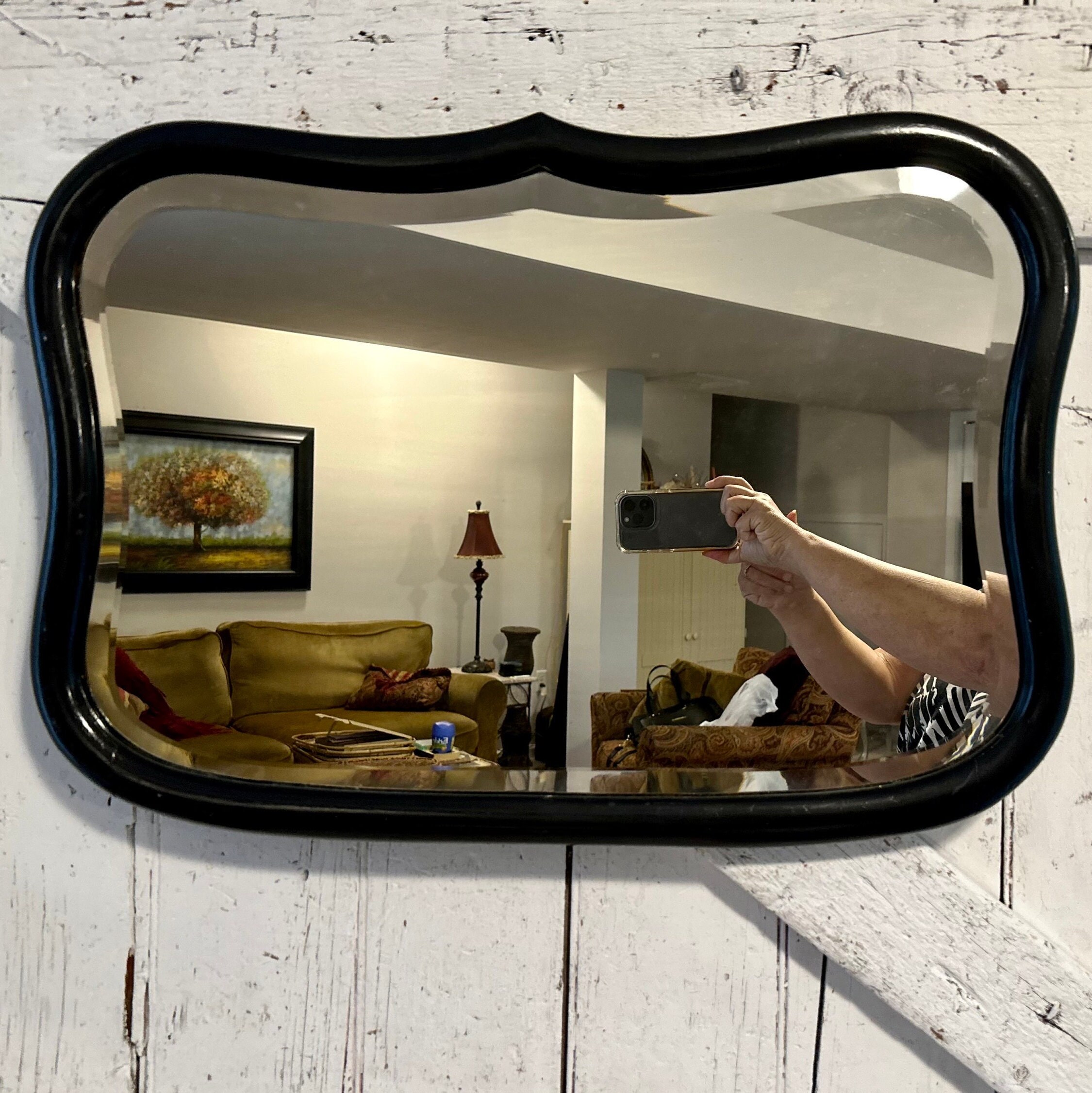 Mirror Black Wood Frame Arched Large Wooden Vintage Mirror 18 X 25 Inches Etsy Uk